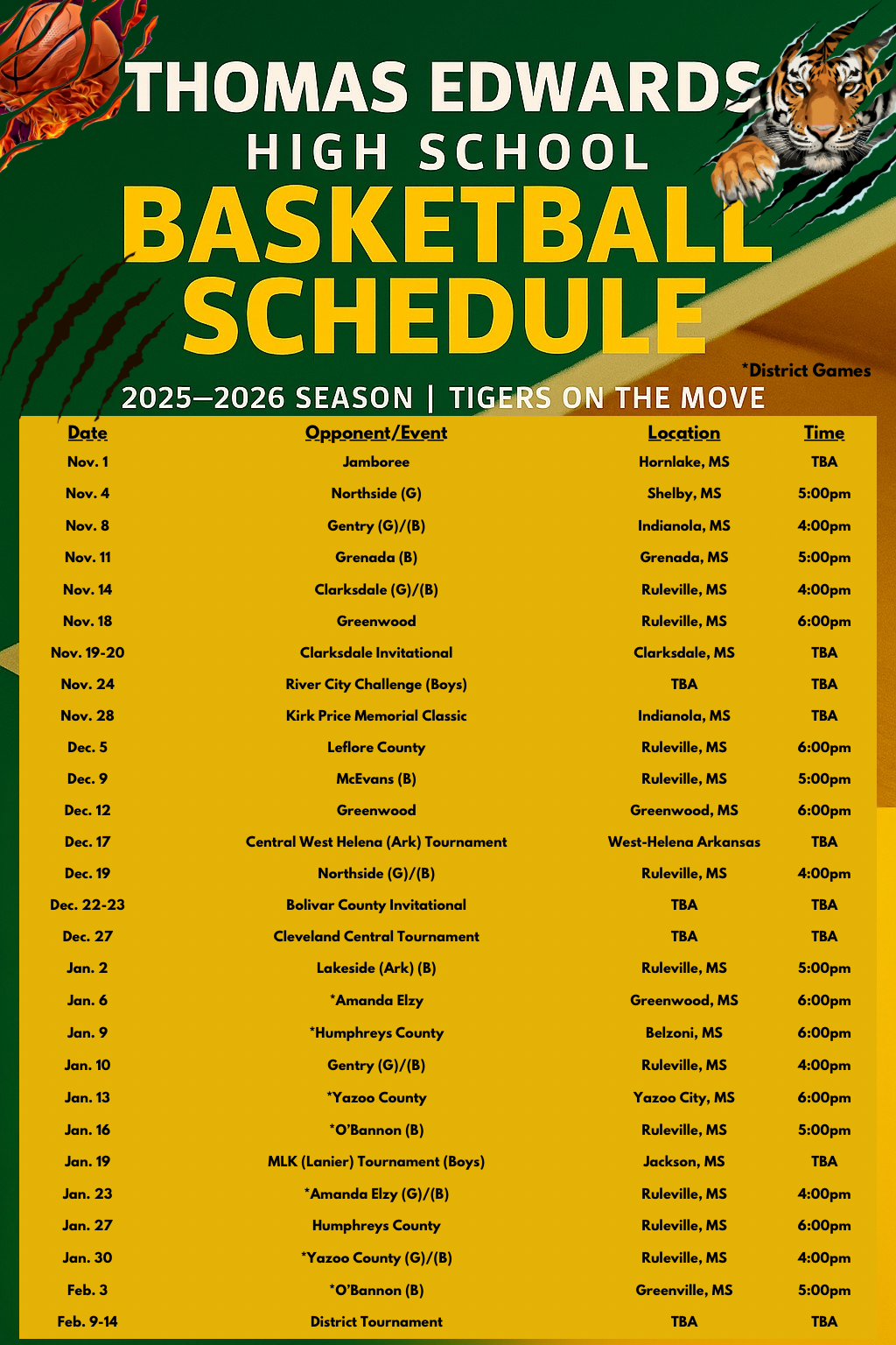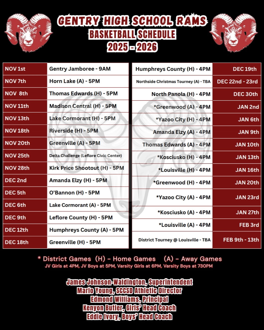- Athletic Schedules